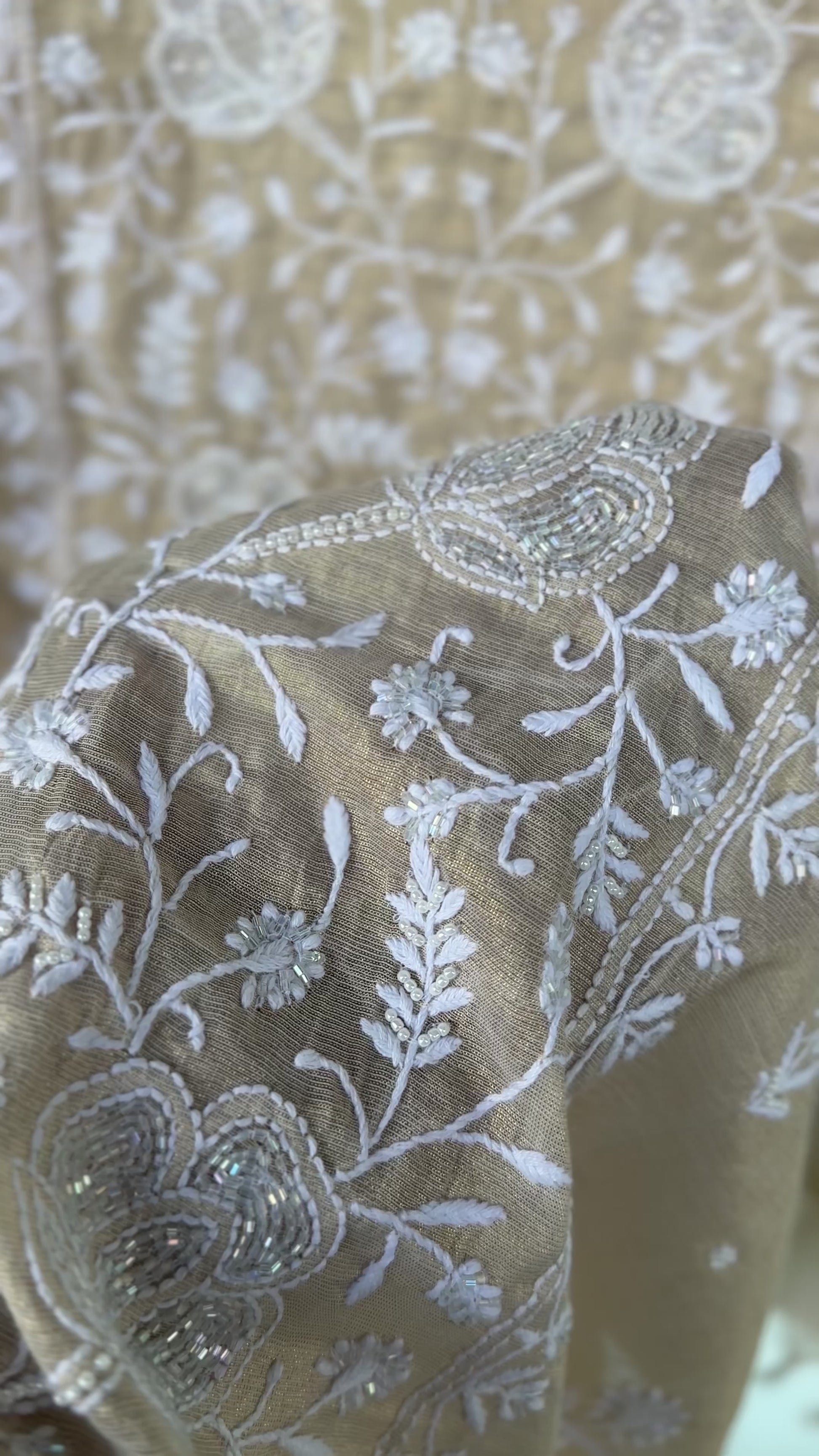 - Fabric: Premium Tissue Chanderi – soft, breathable, and semi-sheer
