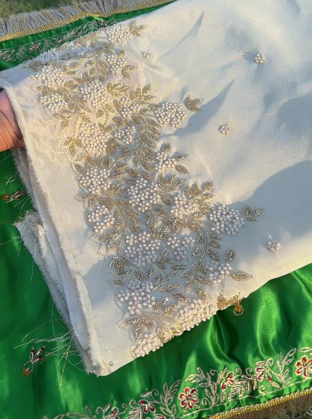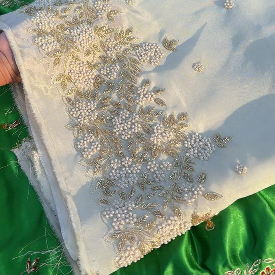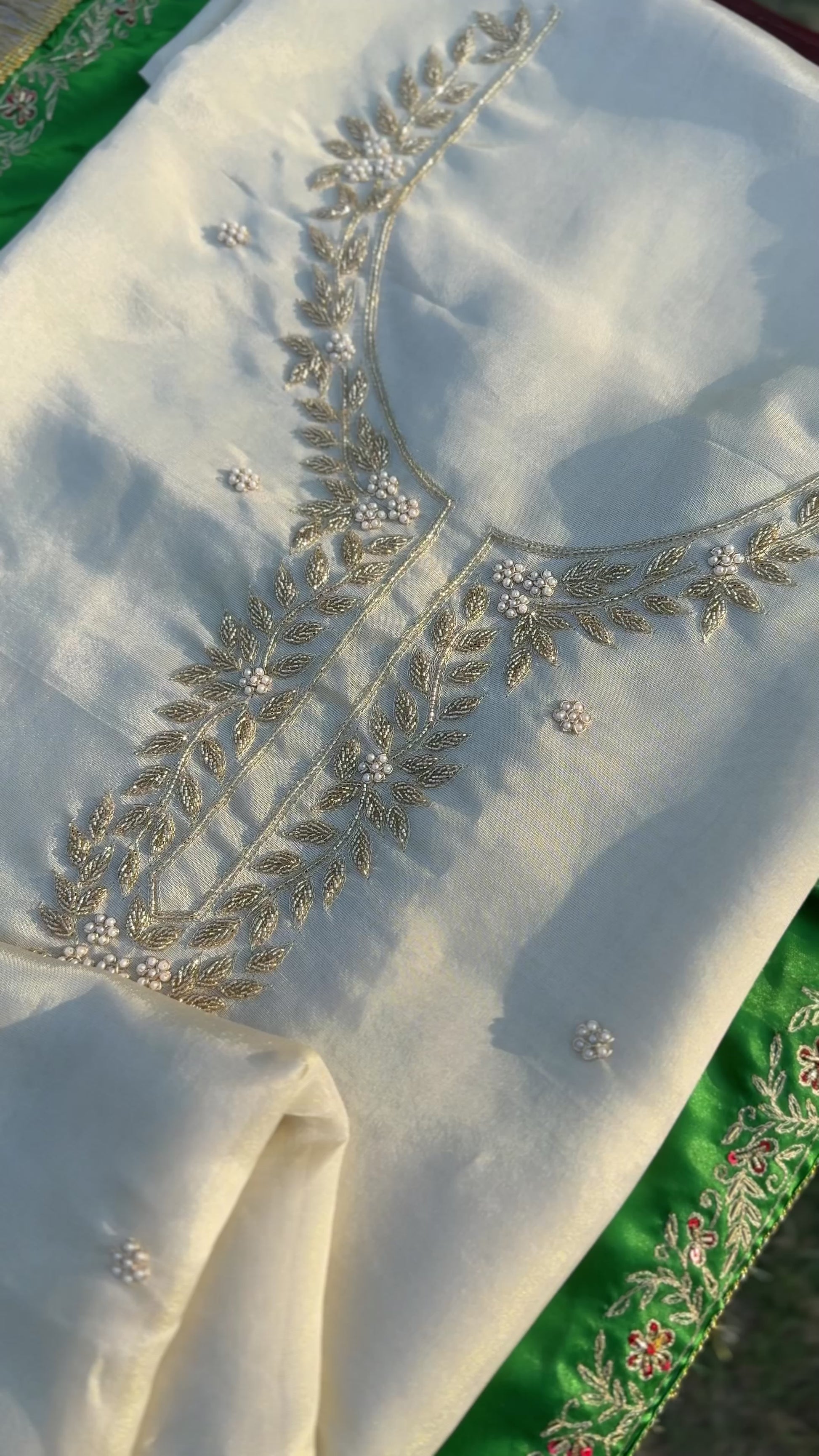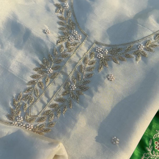 - Kurta Neckline: Handcrafted Pearl, Cutdana, and Zardozi Work
