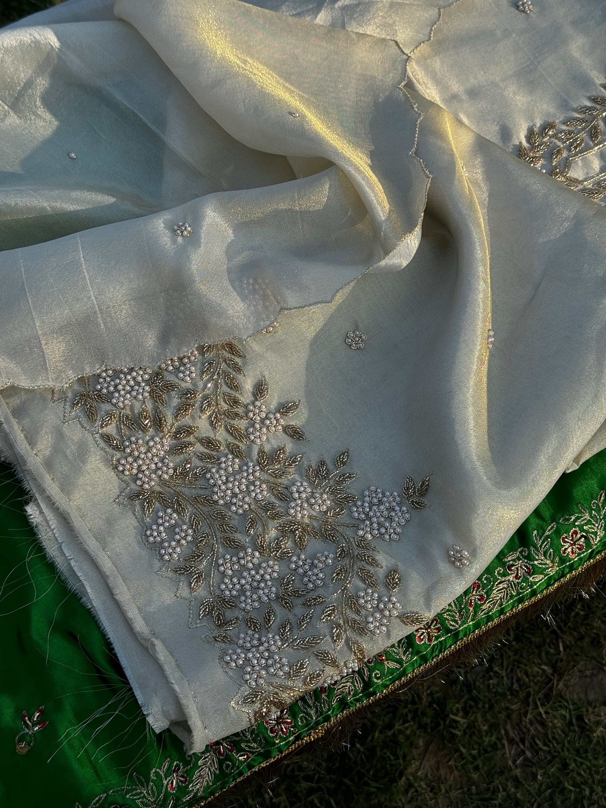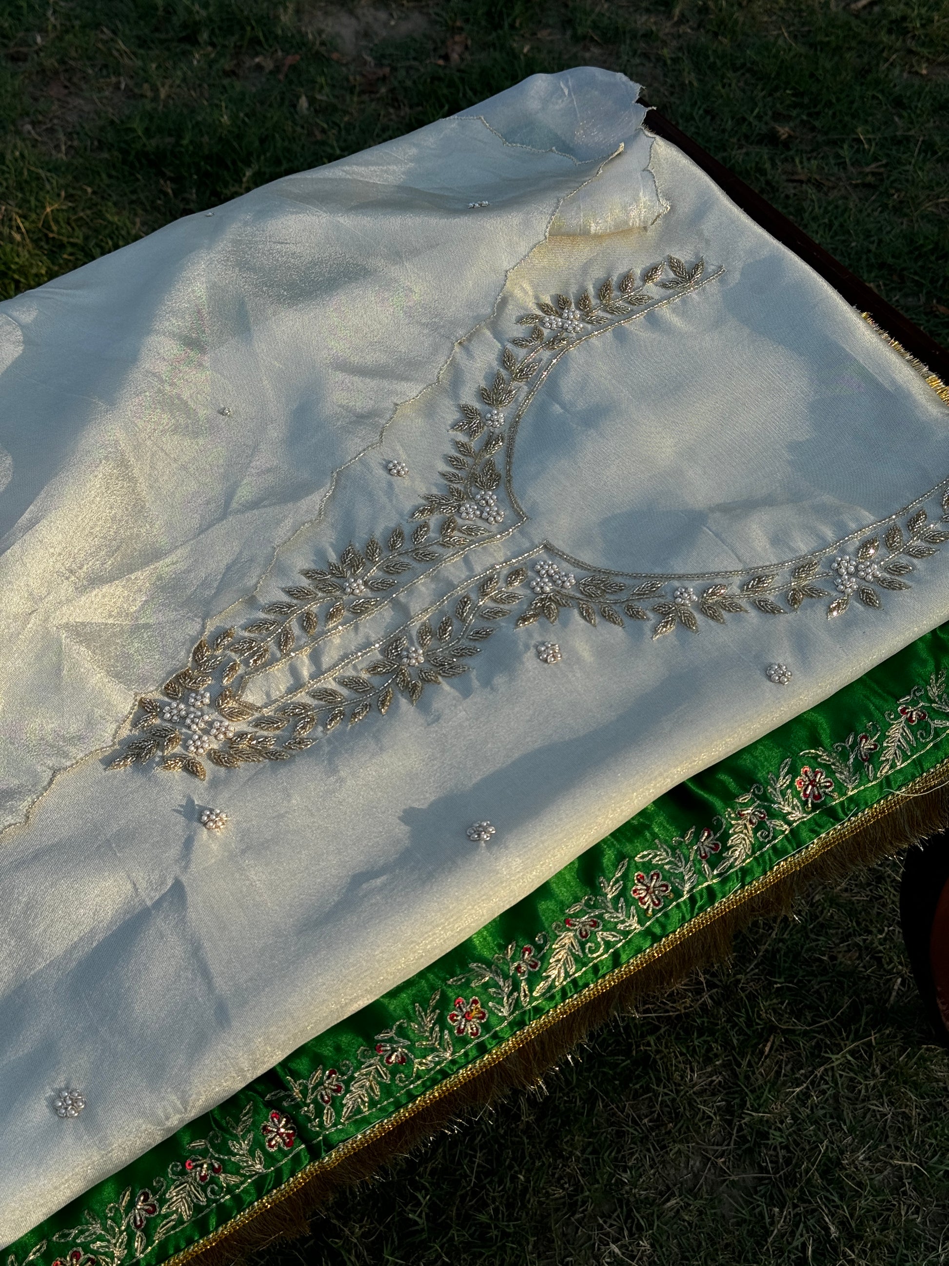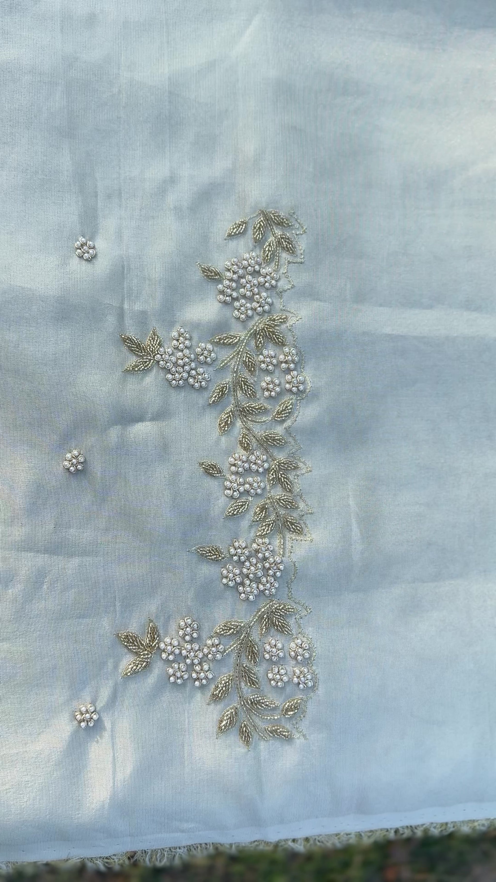 - Kurta Neckline: Handcrafted Pearl, Cutdana, and Zardozi Work