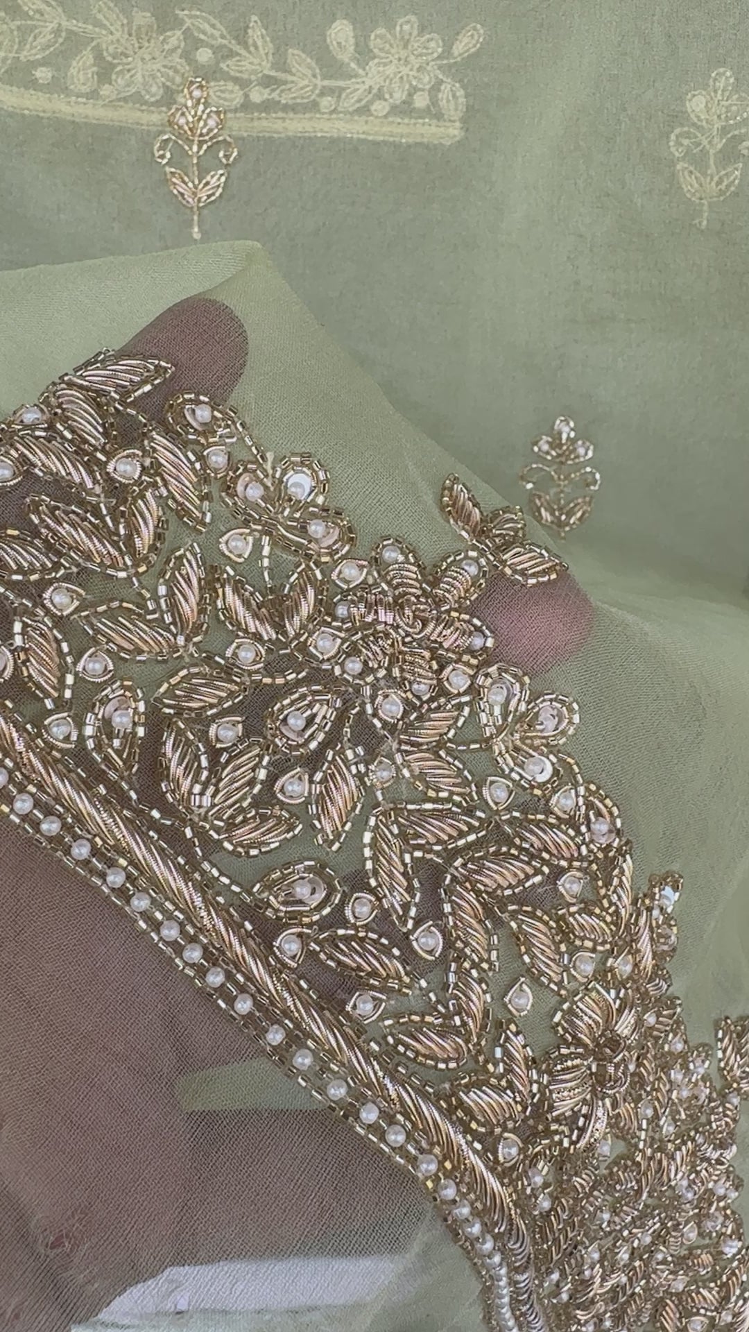 - Embroidery: Hand-done Zardozi work with pearl embellishments